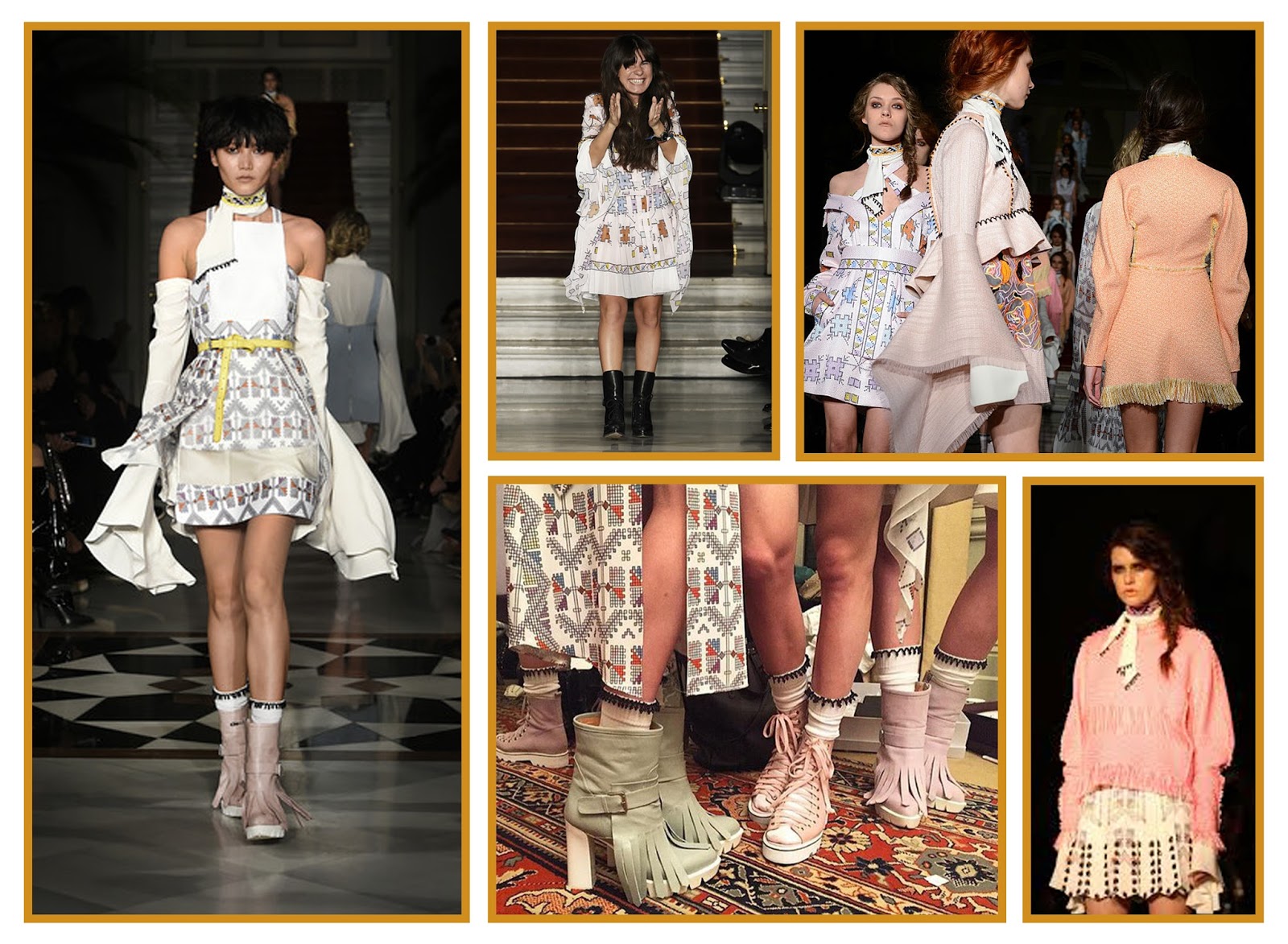 Tosun; uçuş uçuş elbiselere oversize ceketler-rengarenk kabanlar kombinlemiş ve feminen etkileri de minik dantel dokunuşlarıyla vermişti.